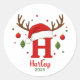 Sticker Rond Personalized Christmas Monogram H Santa Hat