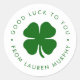 Personalized Good Luck Classic Round Sticker - Modern Minimal Irish Green Clover