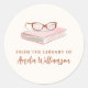 Personalize your book collection with custom bookplate stickers. Features a pink book with reading glasses illustration and "FROM THE LIBRARY OF" with your custom name below. Customizable with any name. Perfect for book lovers, teachers, students, librarians, or anyone who wants to mark their personal library collection.