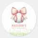 Sticker Rond Personalized Pink Baseball Bow Girl Birthday