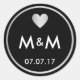 Sticker Rond Personnalisé Elegant Noir Argent & Mariage Coeur