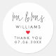 Personnalisé mariage invité faveur Merci stickers avec le texte "Mr. et le nom de famille de la mariée. Design au design moderne, customisé avec la date mariage et un petit coeur rouge.