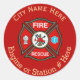 Cet autocollant rond personnalisé est décoré avec la Croix Maltaise de Secourt de feu et peut être customisé ci-dessus avec le nom d'une ville ou d'une ville et ci-dessous avec le numéro du moteur ou de la station, ou toute autre information que vous voudriez remplacer.