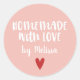 Un autocollant personnalisé "fait maison avec amour" sur un arrière - plan rose. Faites-le le vôtre en ajoutant votre propre nom. Une jolie touche de finition pour tous vos cadeaux faits main. Conçu pour vous par Blackberry Boulevard.