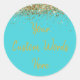 Sticker Rond Personnalisé Turquoise Bleu & Or Anniversaire Fête