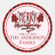 Personnalisé Joyeux buffle rouge noir plaid classique collants ronds. Personnalisez ce bel autocollant minimaliste avec votre propre nom. Thème- minimaliste, rustique, simple, moderne, arbre de noël, bordure rouge noir de buffle. Convient pour autocollant rond et carré. Créé par Artfulz !