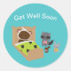 Un joli design de bien-être avec un raton laveur, un lapin et un écureuil visitant leur ami d'ours malade. Le texte dit, "Allez-y bientôt", mais peut être modifié et customisé pour répondre à vos besoins !