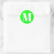 Personnaliser monogramme nombre initial néon vert blanc blanc classique Sticker rond