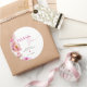Pétales de pivoine fuchsia et prosecco merci Autocollant rond classique
