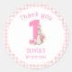Aquarelle Peter Rabbit rose Premier Anniversaire Classic Round Sticker. Éléments correspondants disponibles.