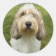 Un PBGV vous regardant droit, à travers ses cheveux et sa barbe, mendiant juste de se faire des amis. Image adorable et mignonne pour tout amoureux des chiens.