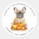 Ces adorables invitations françaises à la douche pour bébé en chiot bulldog sont la meilleure façon de célébrer l'arrivée d'un petit citrouille cet automne. Avec leur design mignon et simple, ces invitations présentent une illustration charmante d'un chiot français bulldog entouré de feuilles d'automne colorées dans les tons orange, rouge et jaune. Le message ludique "A Little Citrouille is on the Way" ajoute une touche de fantaisie à ces invitations modernes et élégantes. Que vous soyez l'hôte d'un rassemblement intime ou d'une célébration plus large, ces invitations vous donneront le ton pour une occasion festive et mémorable. Alors pourquoi ne pas invitation vos proches à se joindre au plaisir et accueillir votre petit citrouille dans le monde avec ces invitations délicieuses, parfait pour célébrer l'arrivée prochaine d'un bébé garçon ou d'une fille. DROIT D'AUTEUR © 2023 Judy Burrows, Black Dog Art - Tous droits réservés. Petit Citrouille mignon Chiot simple Baby shower d'automne Classic Sticker rond