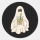 Sticker Rond Petit Fantôme Boire Café glacé Halloween Éffrayant