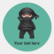 Adorable petit ninja à la fois effrayant et gaie est habillé en tenue noire et portant du katana - l'épée japonaise traditionnelle.