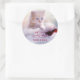 Sticker Rond Petit Kitten reposant sur un chapeau de Noël Meowy