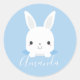 Sticker Rond Petit lapin bleu mignon avec nom personnalisé