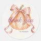 Célébrez l'arrivée automnale de votre petite fille avec cet autocollant de remerciement de baby shower en forme de citrouille avec un nœud rose, orné d'un doux nœud rose et de délicats accents floraux automnaux. Cet autocollant rond est parfait pour sceller les enveloppes d'invitation, décorer les sacs de faveurs de fête, pour remercier vos invités avec amour, ou ajouter une touche charmante à votre décoration de baby shower.