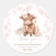 Highland Cow Holy Cow Boho rose Holy Cow Baby shower girl Boho Pampas Grass Classic Round Sticker et des détails élégants — parfait pour sceller des enveloppes, décorer des faveurs, ou ajouter une touche douce à la décoration de la fête.