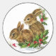 Jolie image rétro de deux lapins dans la neige regardant les oiseaux sur une branche.
