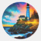 Beau phare blanc et gardiens maison assise sur une colline rocheuse au Sunset AI Art créé par minx267