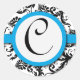 Sticker Rond Phoque Mariage Damask noir Aquamarine Trim