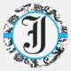 Sticker Rond Phoque Mariage Damask noir Aquamarine Trim