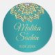 Sticker Rond Phoques de Mariage indien Mandala Flower Turquoise