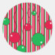 Apportez la joie de Noël à vos proches avec cet autocollant moderne. Des ornements rouges et verts se dressent contre un arrière - plan rayé.