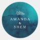 Sticker Rond Phoques d'enveloppe Mariage Moody Ocean Watercolor