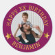 Sticker Rond Photo d'anniversaire et nom d'âge or personnalisé