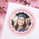 Sticker Rond Photo de fin d'études avec bordure rose ondulée po