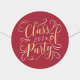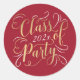 Des autocollants de graduation élégants présentent un design élégant en écriture de fantaisie à feuille d'or sur fond rouge profond pouvant être modifié, avec de jolis accents de défilement blanc.