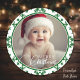 Sticker Rond Photo de Noël Joyeux Vert Et Blanc