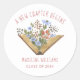Joli livre ouvert avec des fleurs et la phrase Un nouveau chapitre commence font un autocollant de remise de diplôme charmant pour un amoureux des livres ! Typographie écrite à la main pour la phrase et le nom. Le livre aquarellé est charmant et présente différentes fleurs. Voir les articles coordonnés dans notre boutique, Enchanted Finch.