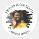 Un autocollant funéraire simple mais élégant personnalisé avec votre photo préférée de votre être aimé et de la typographie qui dit "pour toujours dans nos coeurs" et leur nom.
