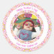 Sticker Rond Photo personnalisé Rose vibrant Joyeux vert Fête d