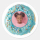 Sticker Rond Photo personnalisée Saupoudrer de beignets bleu fê