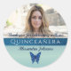 Élégant, élégant, papillon bleu Quinceanera 15e anniversaire autocollant Merci, avec photo personnalisée de la fille.