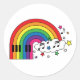 Un arc-en-ciel joyeux et coloré se transforme en touches de piano à mesure qu'il sort d'un nuage musical moelleux entouré de notes de musique et d'étoiles colorées.