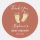 Ces mignonettes en Merci de Baby shower sont décorées de pieds bébé beige aquarelle sur un arrière - plan en terre cuite. Facile à personnaliser.
