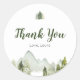 Pine Tree Rustic Adventure Baby shower Classic Round Sticker Merci Stickers. Personnalisez-le avec votre propre nom/ texte