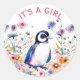 Sticker Rond Pingouin bébé en fleurs C'est une fille | BABY SHO