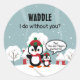 Sticker Rond Pingouin Bébé Gris Mignonne En Neige D'Hiver