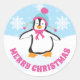 Sticker Rond Pingouin de Noël bleu et rose Casquette