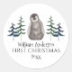 Pingouin et sapin de Noël à l'aquarelle mignonne - premier autocollant de nom personnalisable. Joyeux Noël!