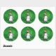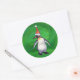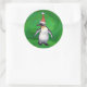 Sticker Rond Pingouin mignon à Santa Hat sur Vert