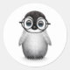 Sticker Rond Pingouin mignon portant des lunettes d'oeil sur bl