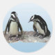 Cet autocollant présente deux adorables pingouins africains debout sur une corniche rocheuse. Ce sont des oiseaux aquatiques sans vol dont les ailes sont devenues des palmes. Chacune a une bande noire et des taches noires sur la poitrine. Le motif de taches est unique pour chaque pingouin, tout comme les empreintes digitales humaines. Ils ont des glandes roses au-dessus des yeux et des pieds roses et noirs.