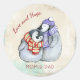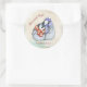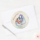 Un autocollant de Noël avec une adorable illustration d'un couple de pingouins se tenant ensemble. Portant des écharpes d'hiver et des casquettes. Placé sur un arrière - plan vintage couleur crème aux accents turquoise le long des bords. Personnalisez comme vous voulez.