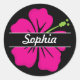 Sticker Rond Pink, Black Tropical Hawaiian Hibiscus Nom de la f